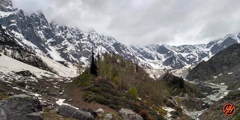 The trek starts with a sheer climb, deeper in the valley are many trees of Pine, Walnut and Birch. Further cross a stream and follow the well-marked trail.