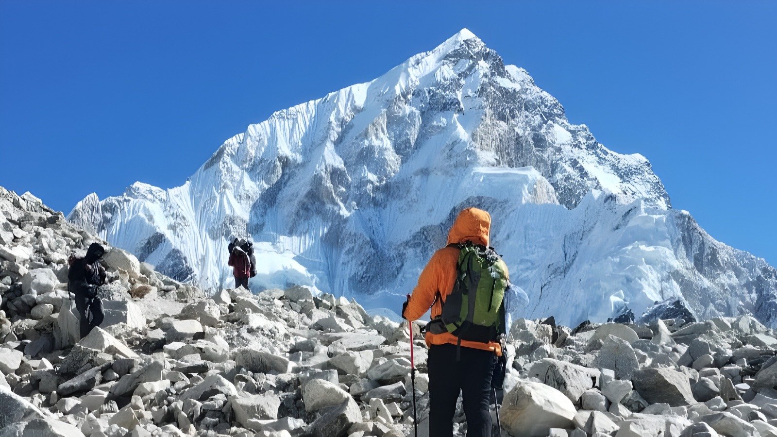 Trekkers walk alongside the legendary Khumbu Glacier, the highest glacier in the world. Seeing massive ice formations, crevasses, and glacial landscapes up close makes this trek unique. This section is highly searched as Khumbu Glacier trek, Everest icefall route, and glacier trekking in Nepal.