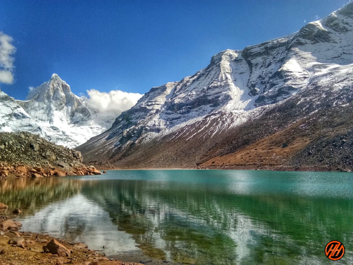 This place is amidst the tall standing mountains all covered by snow, you will get the magnificent views of snow-covered mountains, you don’t often get the close view of mountains on many treks, but at Kedar Tal, you will get close and majestic views of them. Mountains like Thalay Sagar, Bhrigunath, Meru, and Mt. Gangotri and Manda Parvat are closely visible.