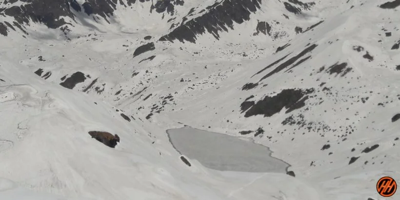 Now, the trek is the landslide prone areas, climb up the hill and you will reach the part with glaciers. Cross the meadow covered totally in snow, from here the steep climb leads to Mayali Pass. Take out your ropes and start crossing this section.