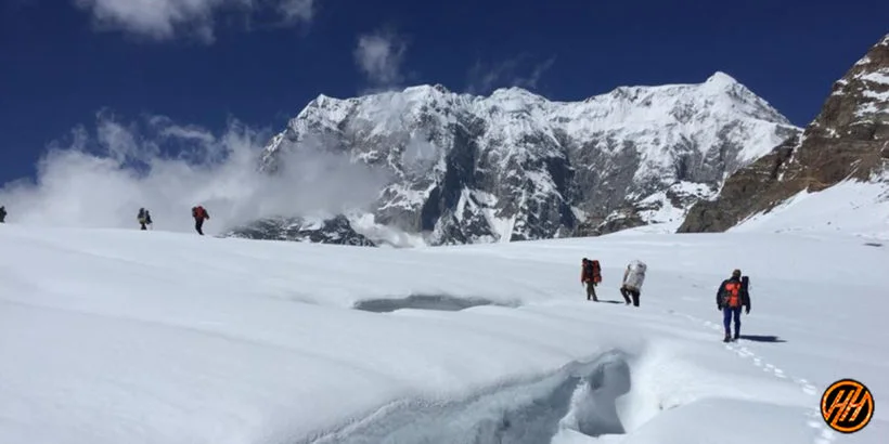 The climb today is steep which will lead to the edge of the terrace. The only way to head forward is through rock gully and steep snow. Cross gentle humps from where Parvati Col and Panpatia snowfield can be reached.